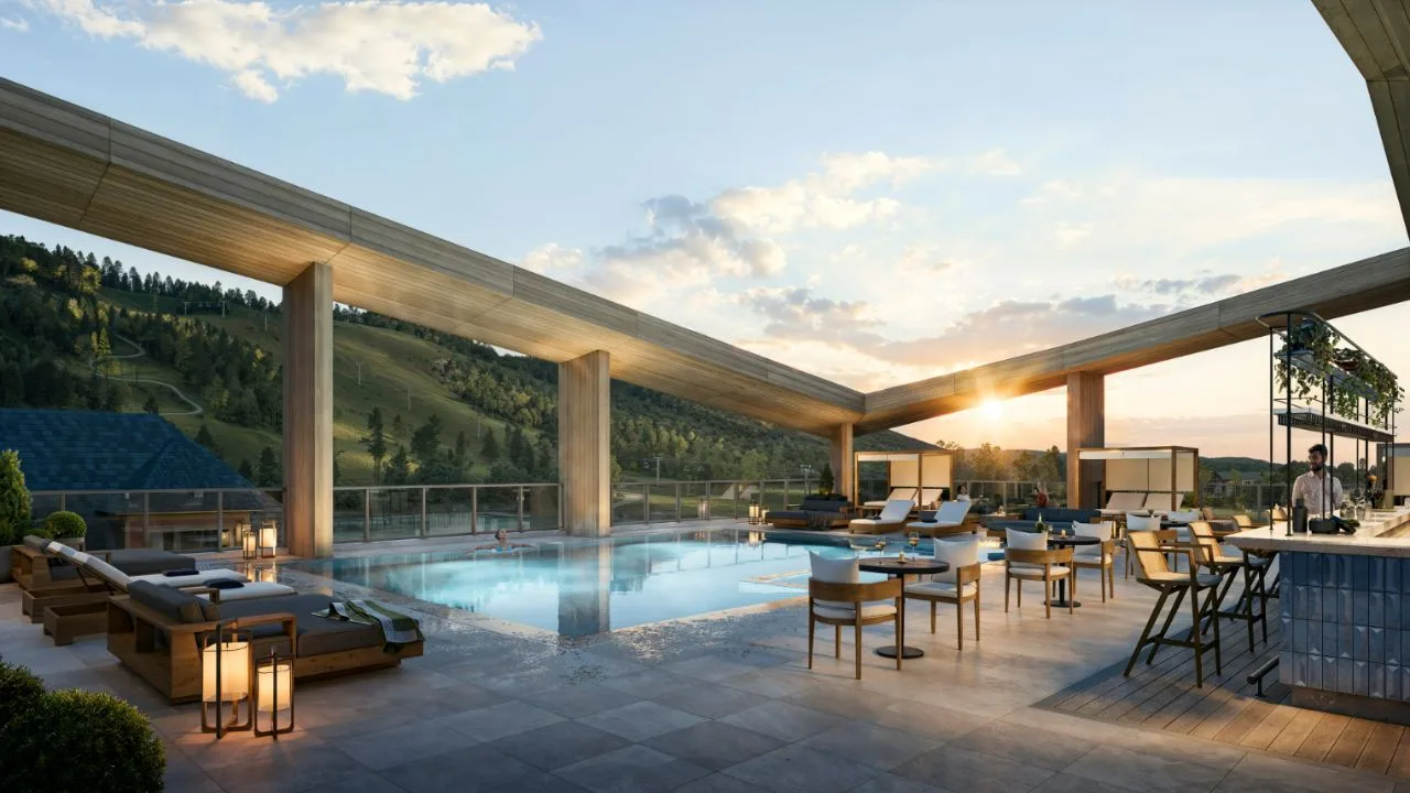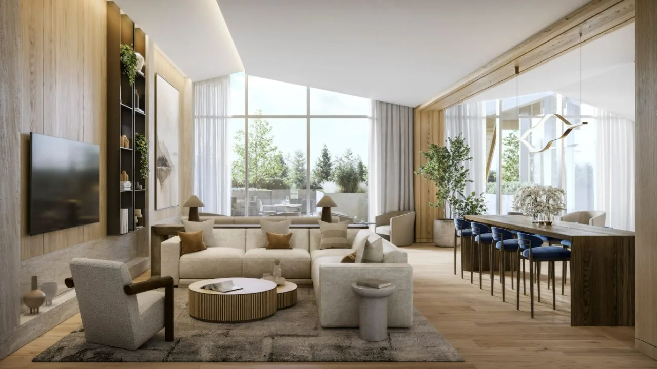 - Resort-Style Amenities: Indoor-outdoor pool, fitness centre, sauna, and fireside lounges