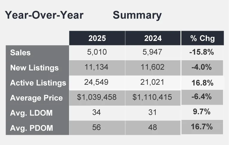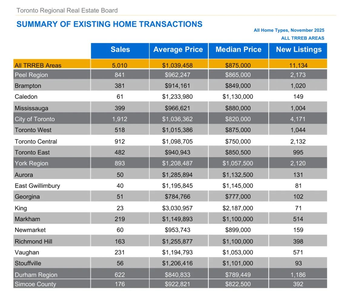 Compared to November 2024, the GTA housing market has seen several notable changes: